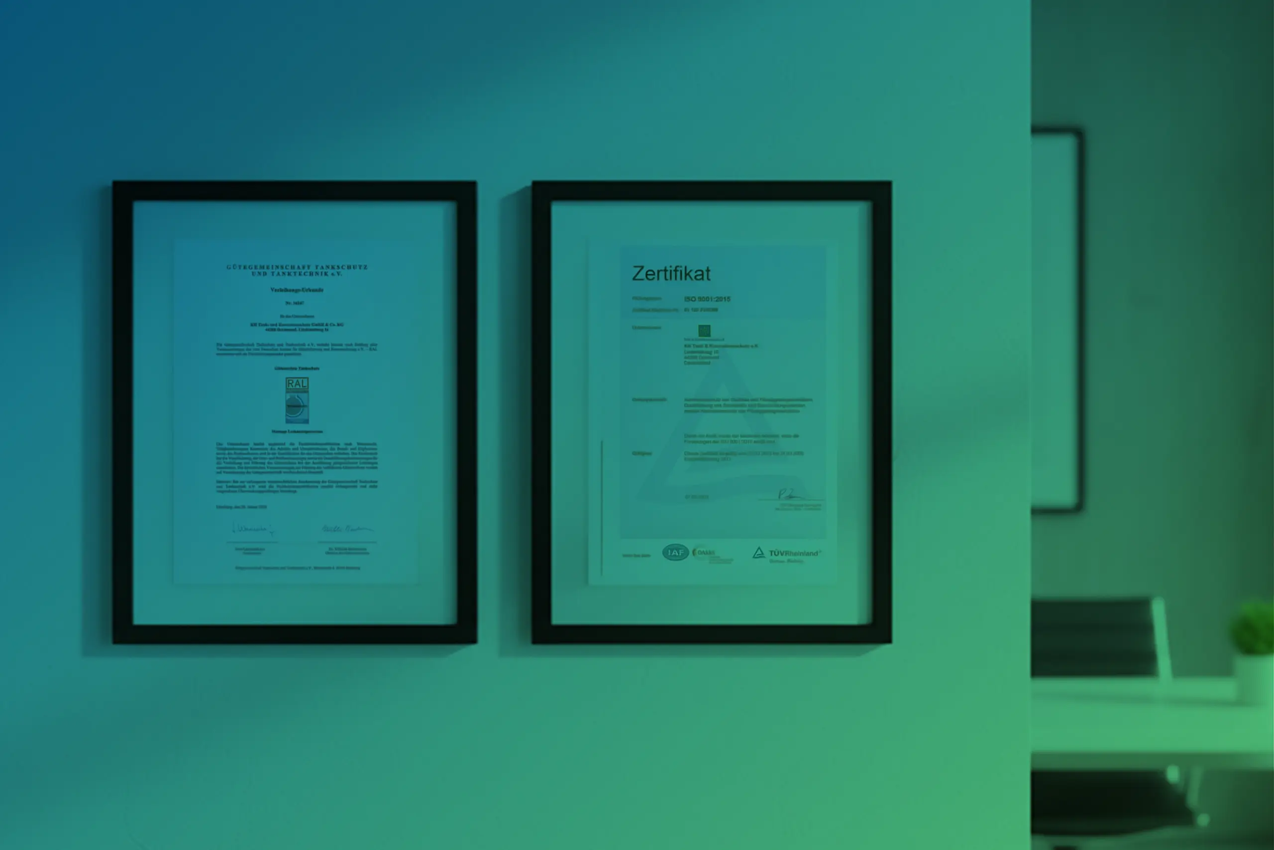 Unsere Zertifizierungen stehen für höchste Standards in Qualität, Sicherheit und Umweltschutz. Sie geben Ihnen die Gewissheit, dass wir unsere Leistungen zuverlässig, transparent und auf konstant hohem Niveau erbringen – und dass Sie sich auf uns als vertrauenswürdigen Partner verlassen können.
